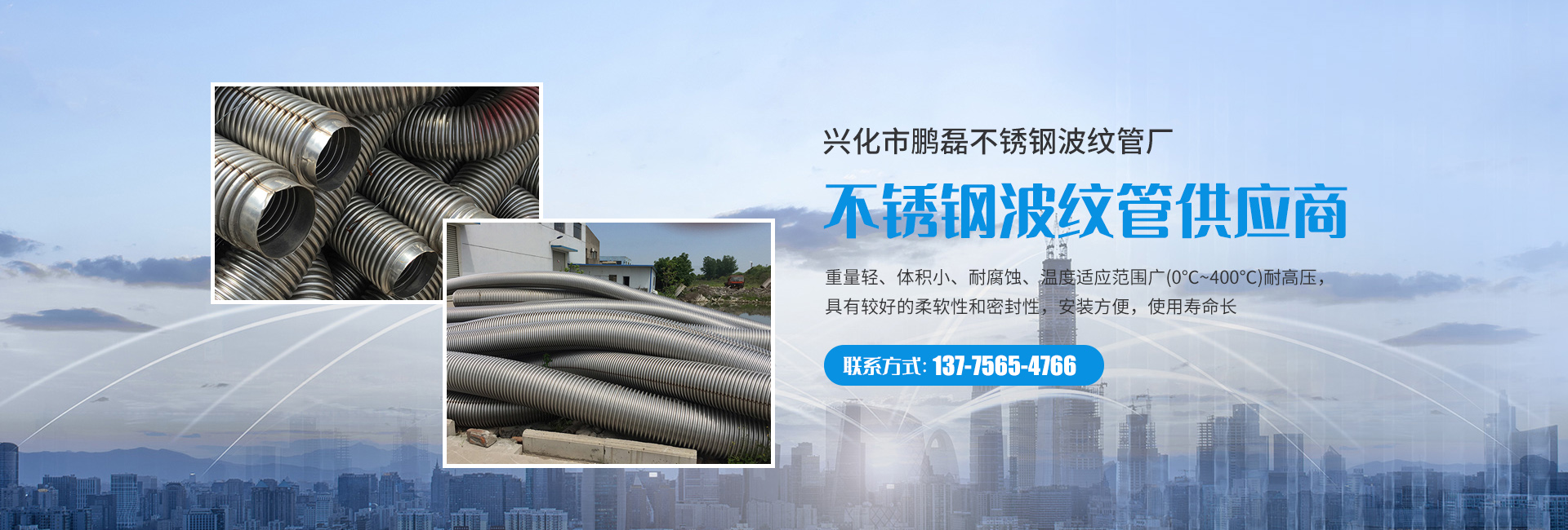 兴化市鹏磊不锈钢波纹管厂位于苏中平原张郭镇,临近宁通、宁靖盐高速公路交通便利,距上海、苏州、无锡南京等大中型城市不超过2小时的车程。我厂按GB/T14525/QJ811标准和参照ISO7314标准设计生产的不锈钢软管、不锈钢补偿器、内补聚四氟乙烯软管、内补聚四氟乙烯补偿器在冶金、石油、化工、航天、真空设备、医药、制冷、橡胶、建筑、食品、运输等诸多行业中得到客户的认可和好评